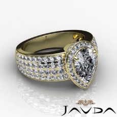 Halo Bezel 3 Row Shank Pear diamond engagement Ring in 14k Gold Yellow