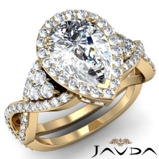 Twist Shank Circa Halo Pave Pear diamond Ring in 14k Gold Yellow