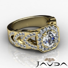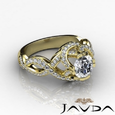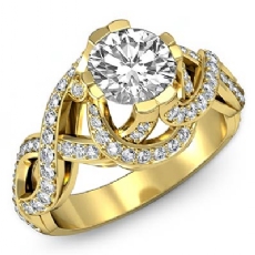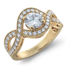 Halo Pave Cross Shank Filigree Round diamond Engagement Ring in 18k Gold Yellow