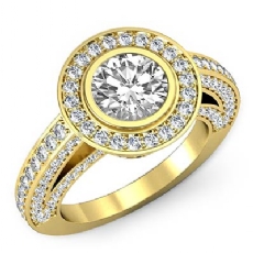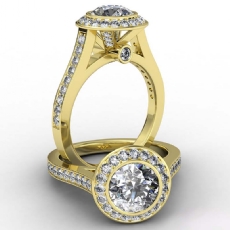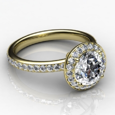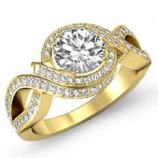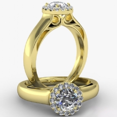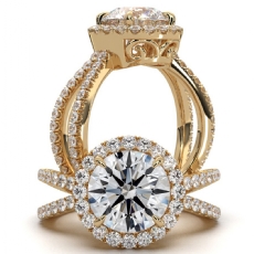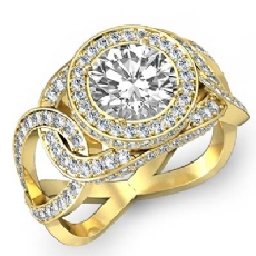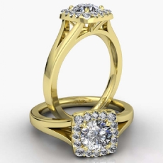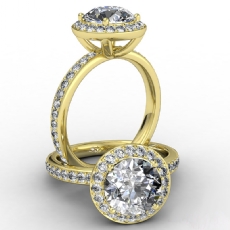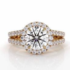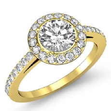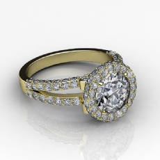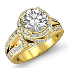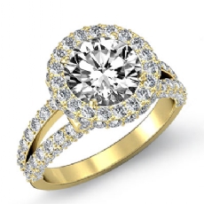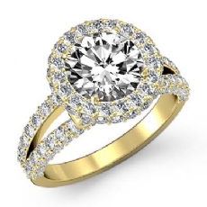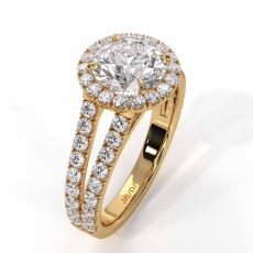 Split Shank Pave Set Halo Round diamond engagement Ring in 18k Gold Yellow