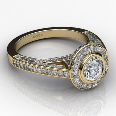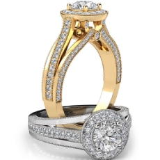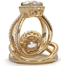 Split Shank Halo Pave Filigree Round diamond engagement Ring in 18k Gold Yellow