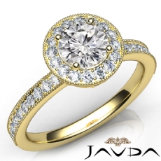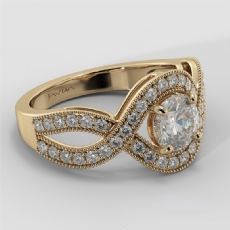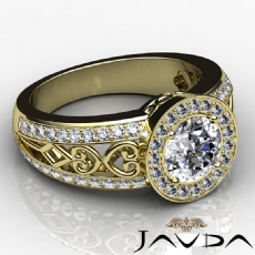 Halo Pave Set Filigree Shank Round diamond Ring in 18k Gold Yellow