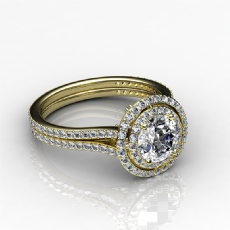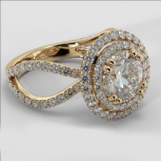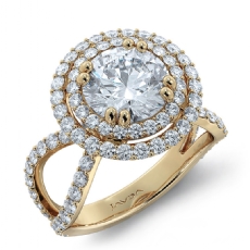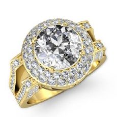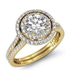 Double Halo Split Shank Round diamond engagement Ring in 18k Gold Yellow