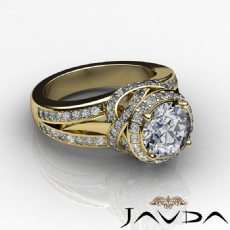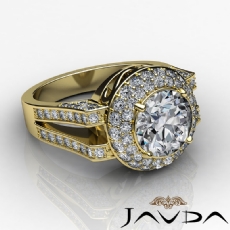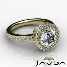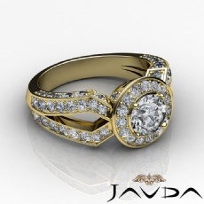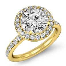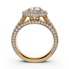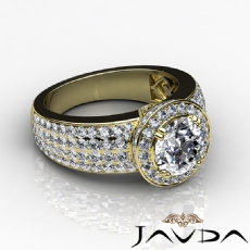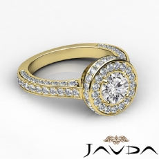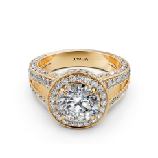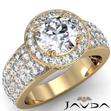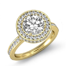 4 Row Shank Halo Pave Setting Round diamond engagement Ring in 18k Gold Yellow