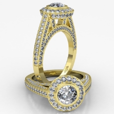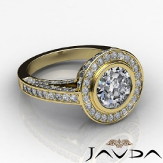 Bezel Set Halo Bridge Accent Round diamond engagement Ring in 18k Gold Yellow