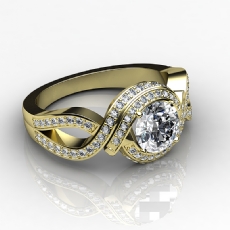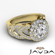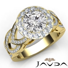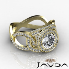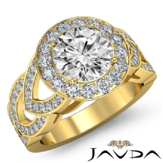 Designer Shank Halo Pave Round diamond engagement Ring in 18k Gold Yellow
