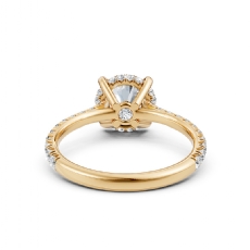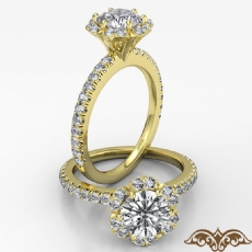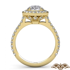 Halo U Cut French Pave Set Round diamond Ring in 18k Gold Yellow