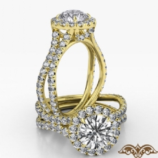 Halo Split Shank French U Pave Round diamond Ring in 18k Gold Yellow
