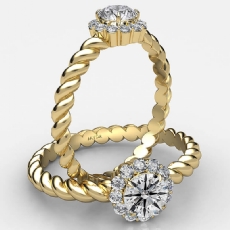 Twisted Rope Prong Set Halo Round diamond Ring in 18k Gold Yellow