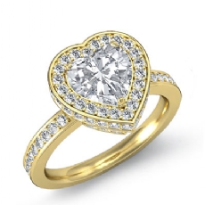 Pave Setting Halo Sidestone Heart diamond engagement Ring in 18k Gold Yellow