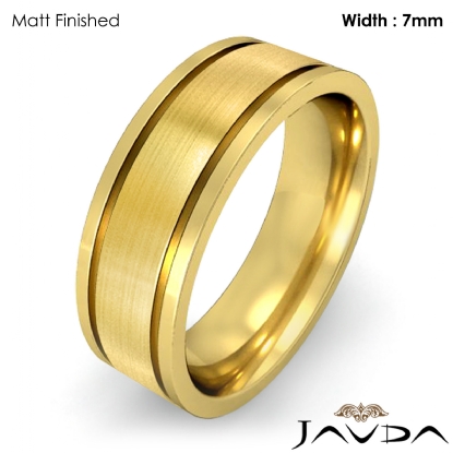 9.2 gram Men's 18k Gold Yellow Solid Wedding Band. Flat Newport style band. Ring Size is 4". Width is 7mm. Available in high polish and matt finish.