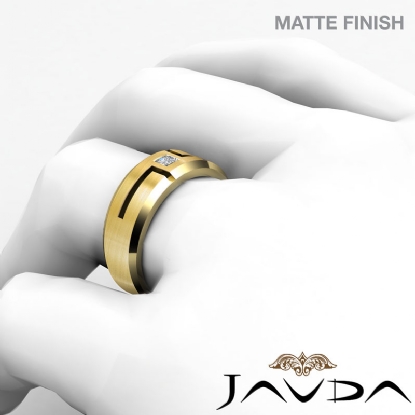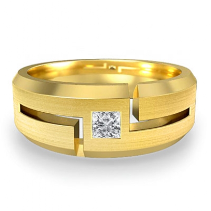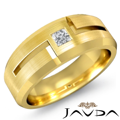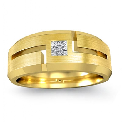 Solitaire Princess Diamond Matte Men's Wedding Band 18k Gold (0.15Ct. tw.)