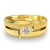 Fashionable handmade solitaire princess diamond men's half wedding band is made from 18k Gold Yellow. Showcasing polished beveled edge and matte finished center with 1 princess diamond in a bezel setting.