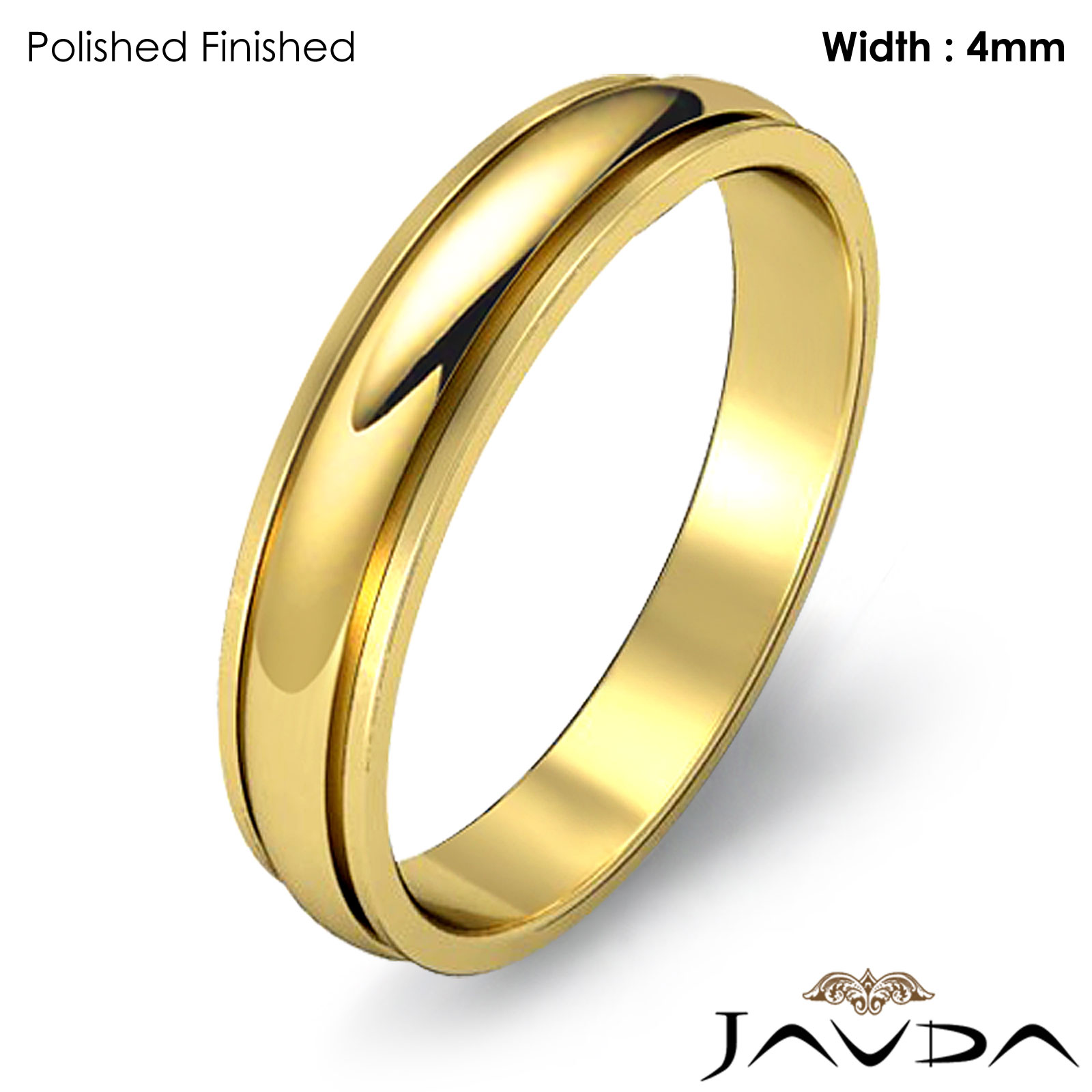 3.6 gram Men's 18k Gold Yellow Solid Wedding Band. Dome Step Down style band. Ring Size is 4". Width is 4mm. Available in high polish and matt finish.