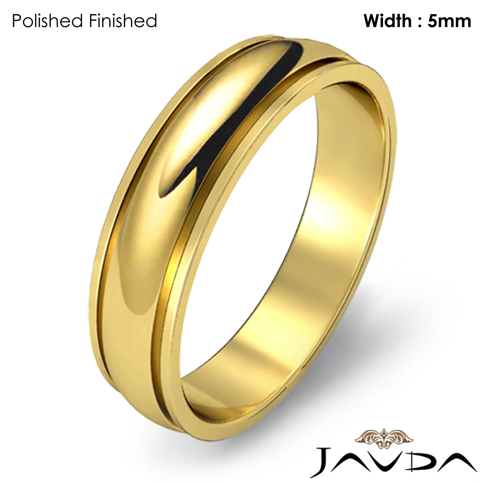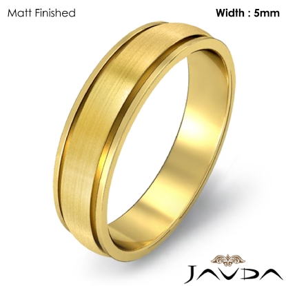 4.5 gram Men's 18k Gold Yellow Solid Wedding Band. Dome Step Down style band. Ring Size is 4". Width is 5mm. Available in high polish and matt finish.