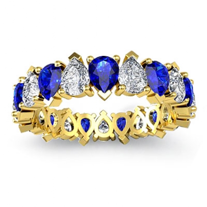 Pear Cut Sapphire Diamond Eternity Wedding Band made in 14k Gold Yellow. (1.37Ct. tw.)