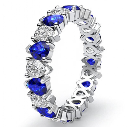 Pear Cut Sapphire Diamond Eternity Wedding Band made in 18k Gold White. (1.37Ct. tw.)