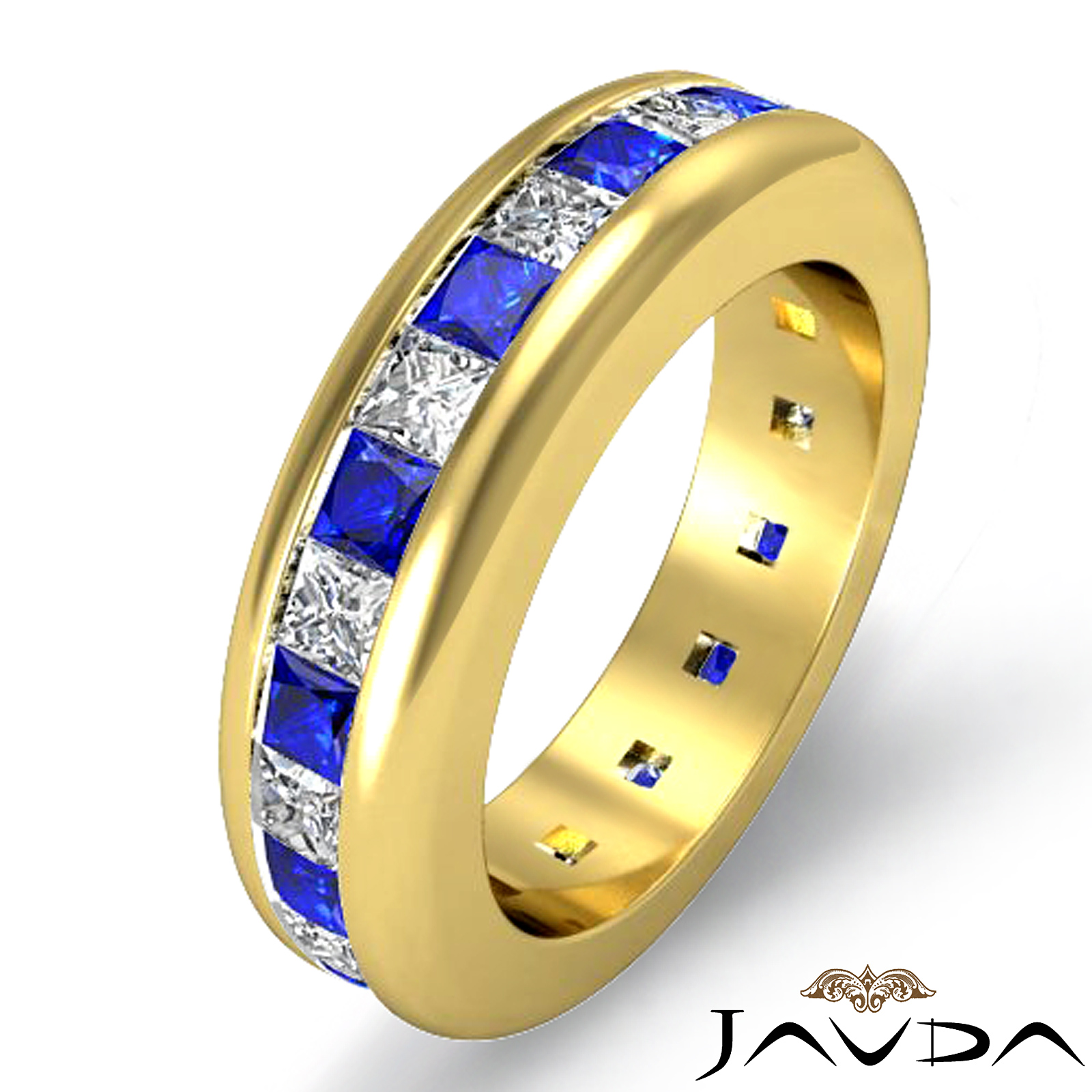 Princess Sapphire Diamond Channel Set Eternity Band Womens Ring 14k Gold (1.3Ct. tw.)