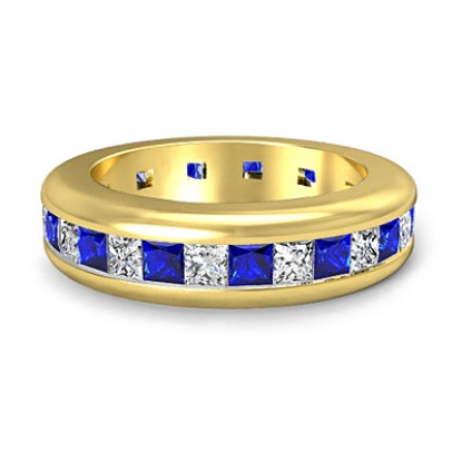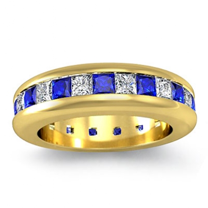 Princess Sapphire Diamond Channel Set Eternity Band Womens Ring 18k Gold (1.3Ct. tw.)