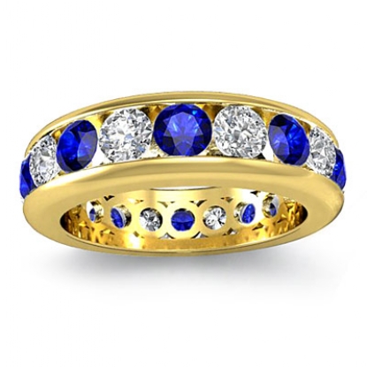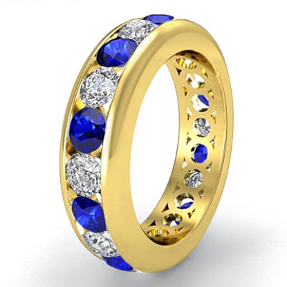 Round Sapphire Diamond Channel Eternity Women's Band Ring 14k Gold (1Ct. tw.)