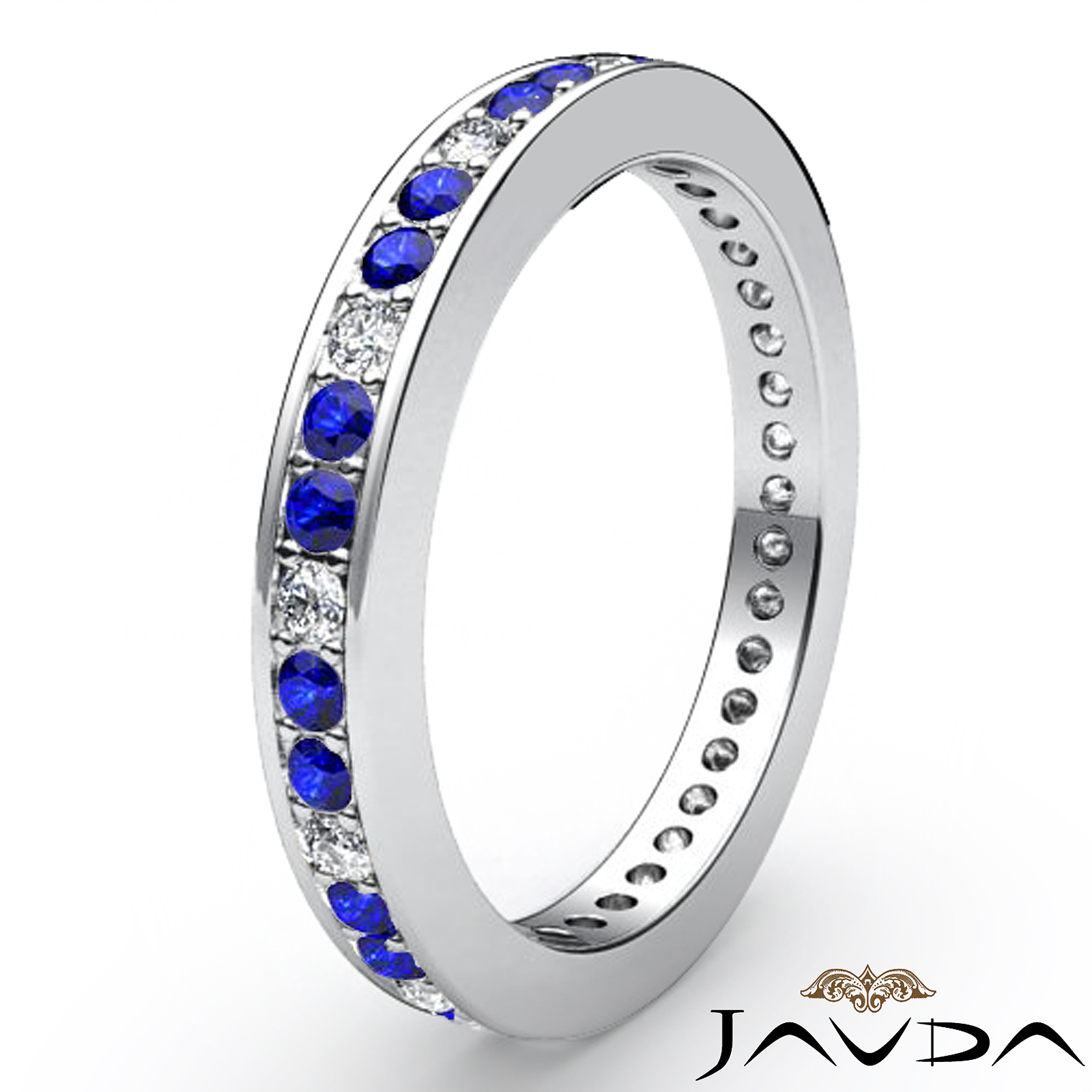 Women's Eternity Sapphire Diamond Engagement Wedding Band Platinum Ring (0.13Ct. tw.)