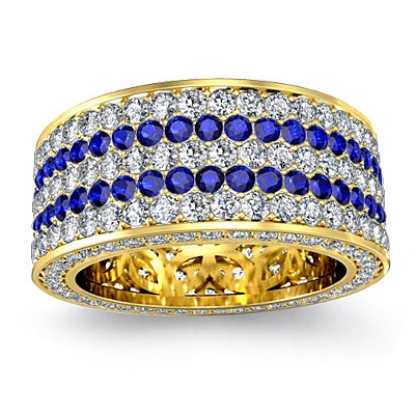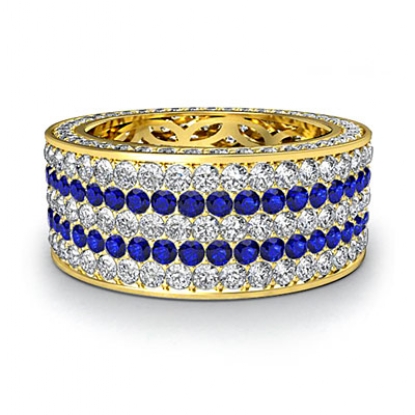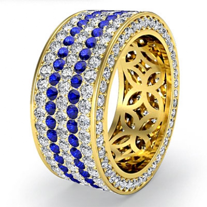 5Row Women Eternity Band Sapphire Diamond Anniversary Ring 14k Gold (2.17Ct. tw.)