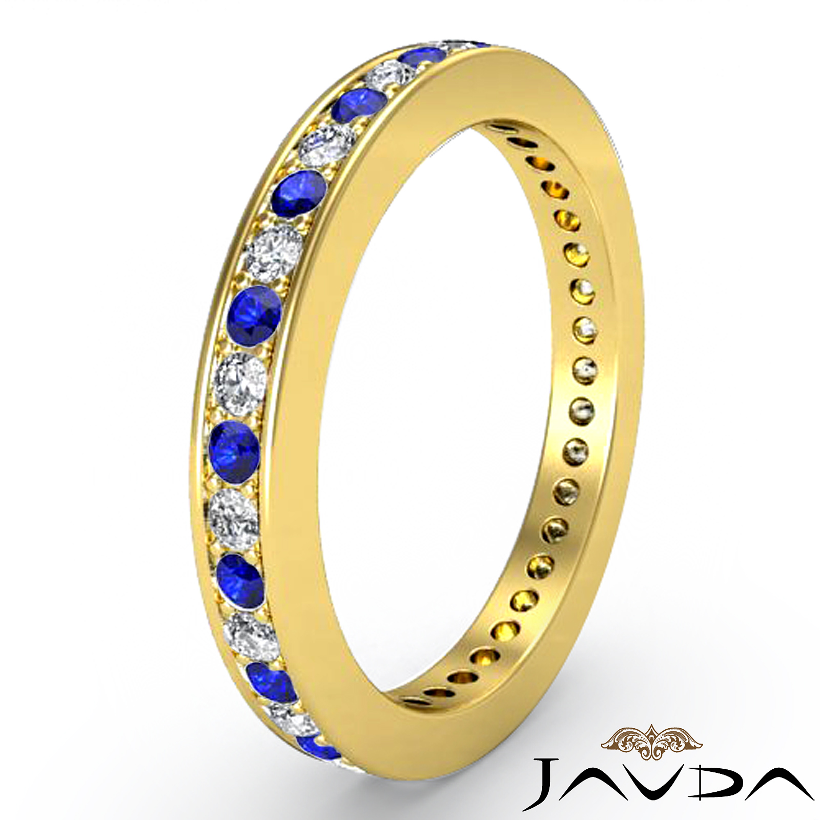 0.4 CT Round Eternity Sapphire Diamond Wedding band 18k Gold Yellow (0.18Ct. tw.)