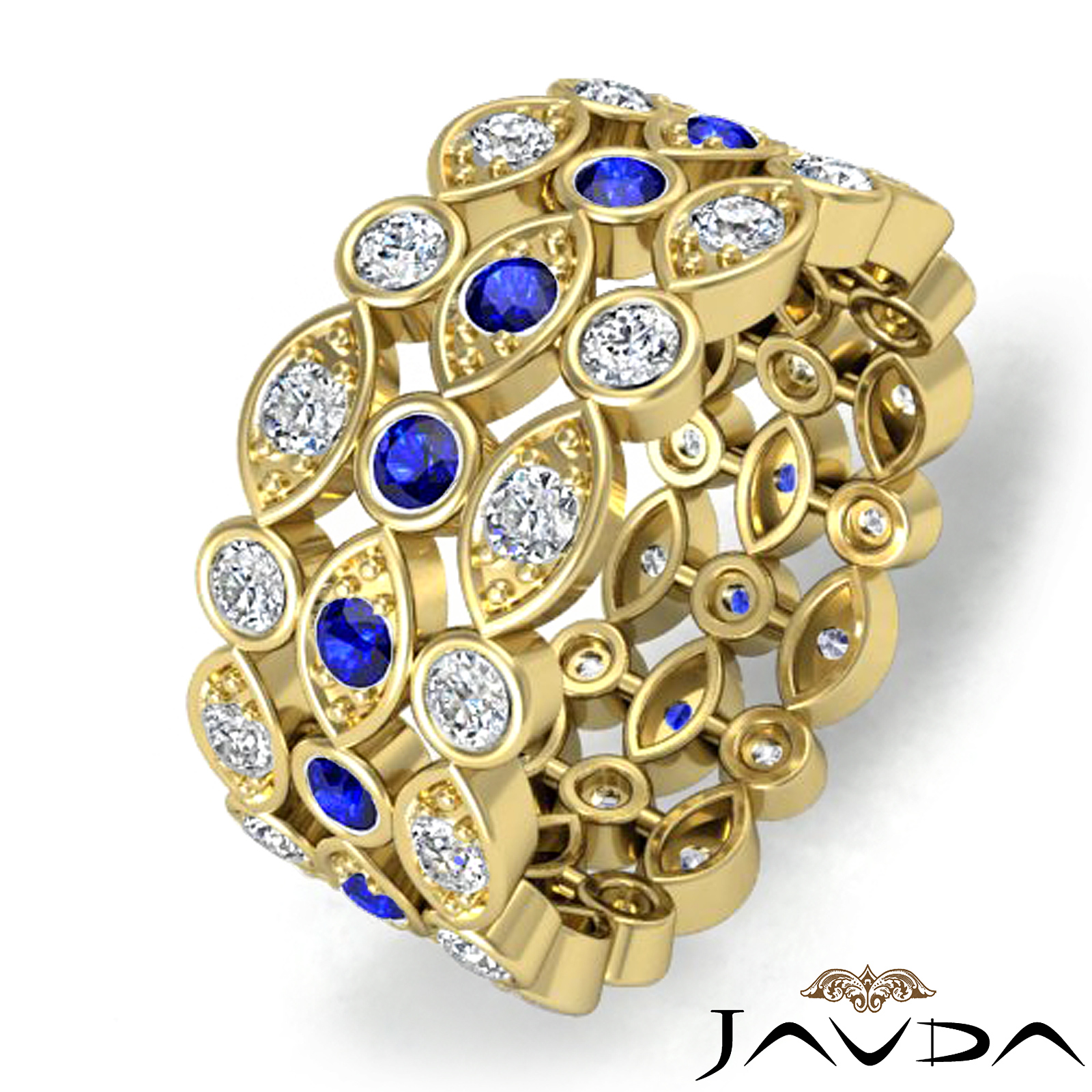 Womens Eternity Engagement Band Pave Bezel Sapphire Diamond 18k Gold Ring (0.65Ct. tw.)