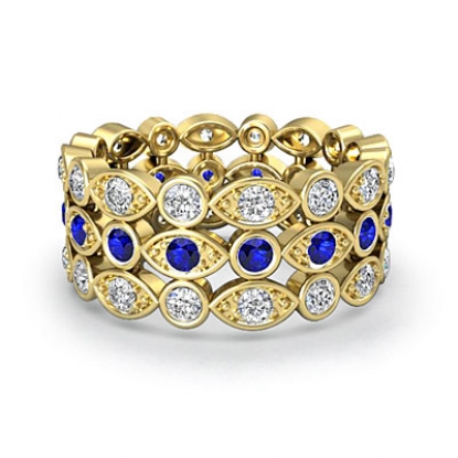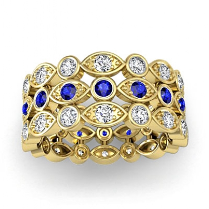 Dcarat> Round Sapphire Diamond Pave & Bezel Set on A Women's Eternity Wedding Anniversary Band 18k Gold Yellow Ring. (0.65Ct. tw.)