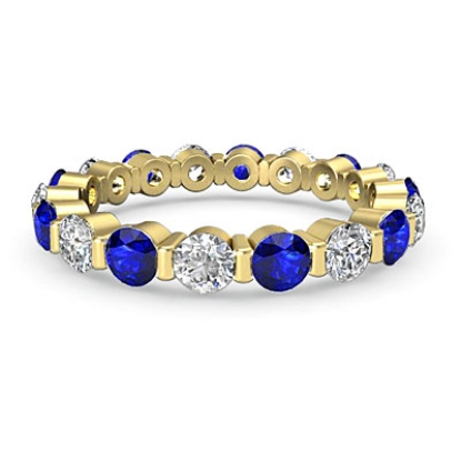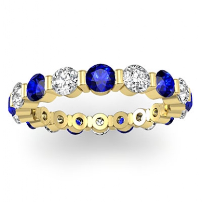 14k Gold Yellow women's full-eternity 3.80mm (milimeter) wedding ring with shared prong setting securely holding 19 Round Sapphire diamonds. The total Sapphire diamond weight for this item is . (1Ct. tw.)