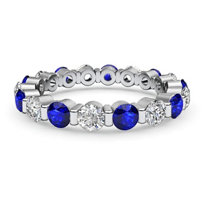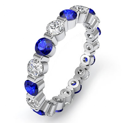 Platinum 950 women's full-eternity 3.80mm (milimeter) wedding ring with shared prong setting securely holding 19 Round Sapphire diamonds. The total Sapphire diamond weight for this item is . (1Ct. tw.)