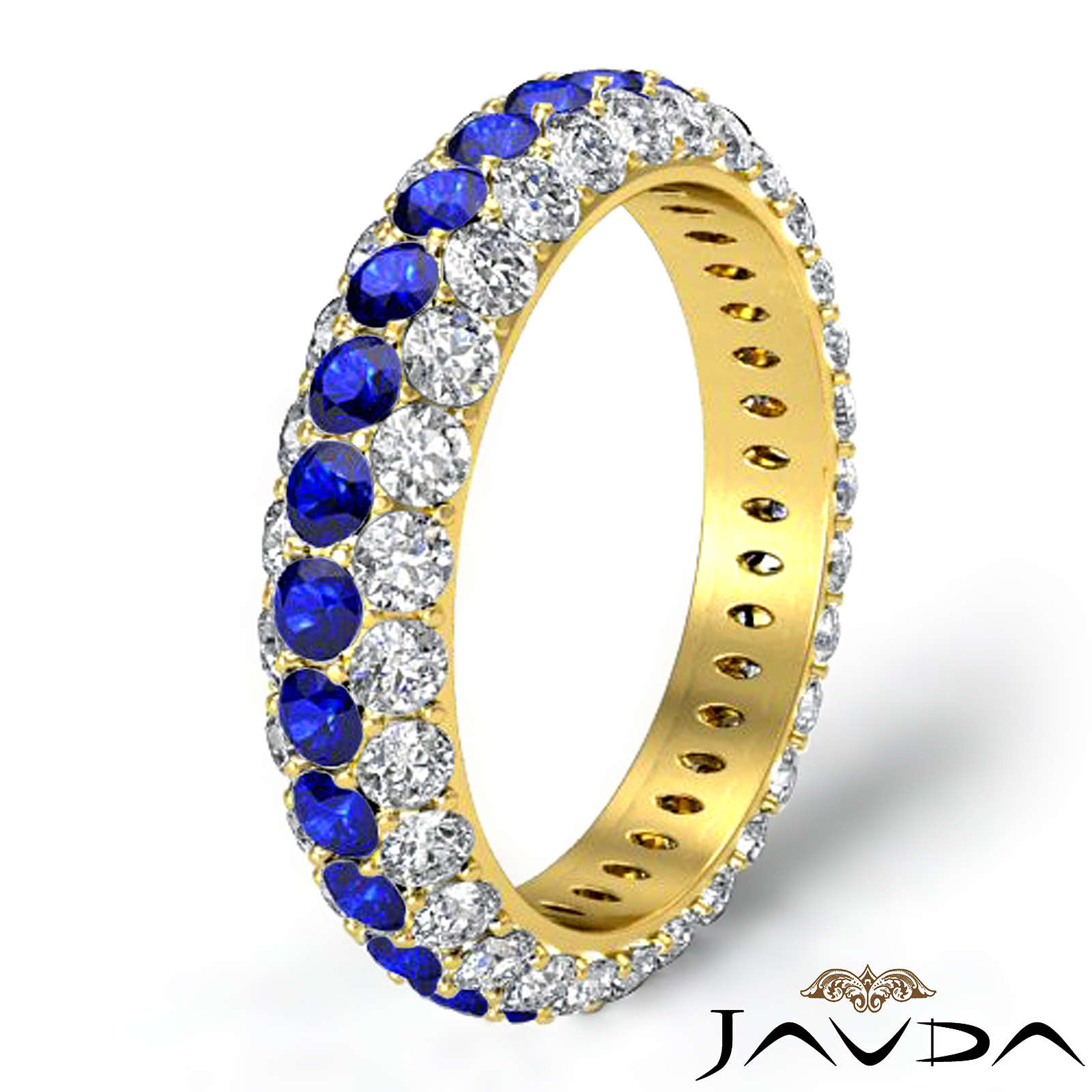 Round Pave Sapphire Diamond Women Eternity Ring Band made in 14k Gold Yellow. (1.55Ct. tw.)