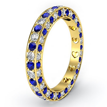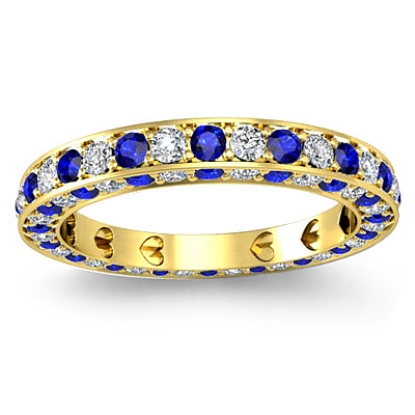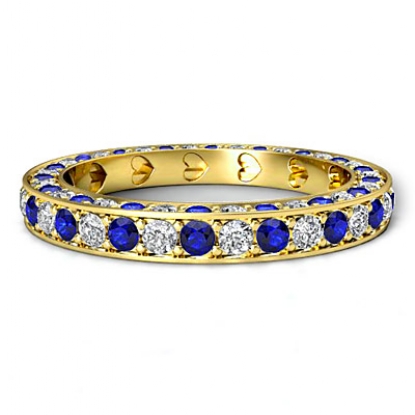 Round Pave Set Eternity Sapphire Diamond Womens Wedding Band 18k Gold Yellow Ring. (0.85Ct. tw.)