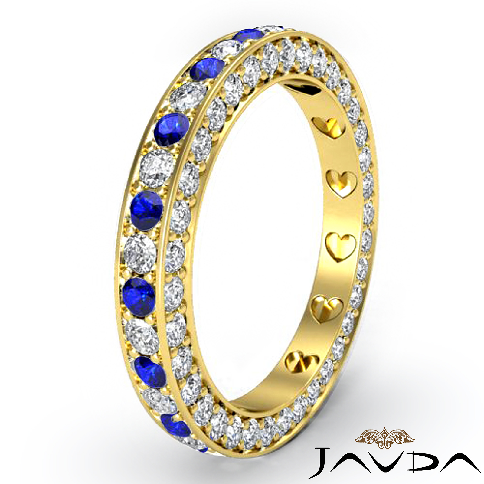 Round Pave Set Eternity Sapphire Diamond Womens Wedding Band 14k Gold Yellow Ring. (1.04Ct. tw.)