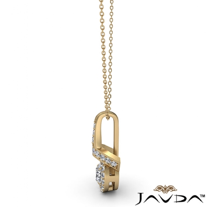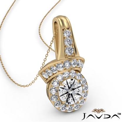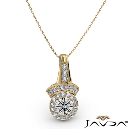 Sparkling designer halo diamond pendant necklace made in 14k Gold Yellow. The elegant pendant features round diamond in a micro pave setting, this pendant comes with 18 inch rolo chain that secures with a spring ring clasp.