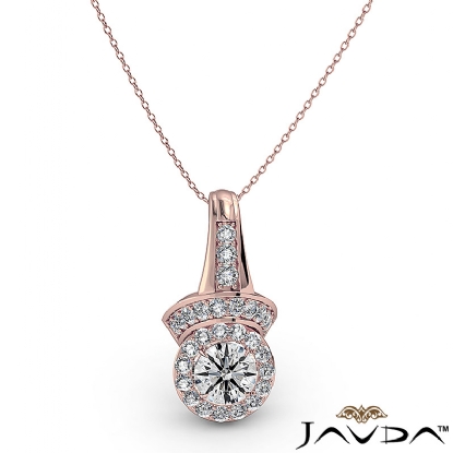 Designer Halo Diamond Pendant Necklace 18k Rose Gold 18 Inch Chain (0.42Ct. tw.)