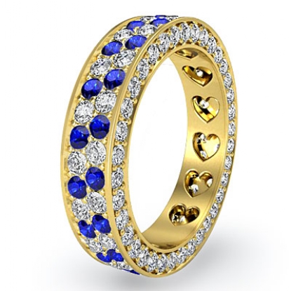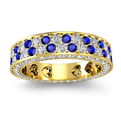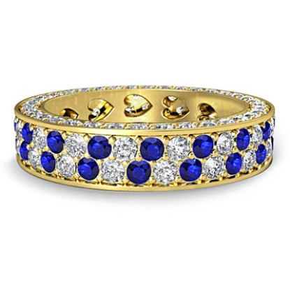 Women Eternity Engagement Band 14k Gold 2Row Pave Sapphire Diamond Ring (1.39Ct. tw.)