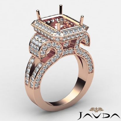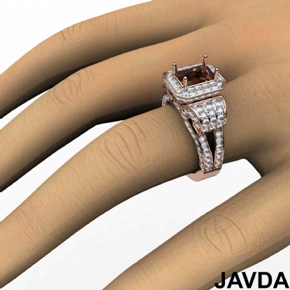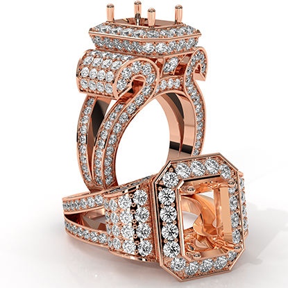 Emerald Diamond Vintage Semi Mount Engagement Ring 18k Rose Gold Halo (2.4Ct. tw.)