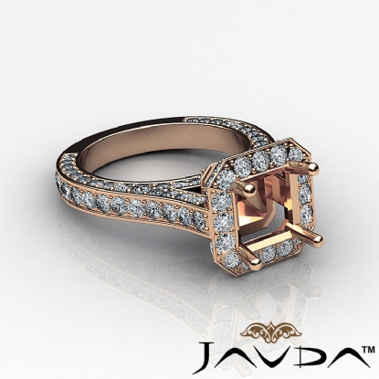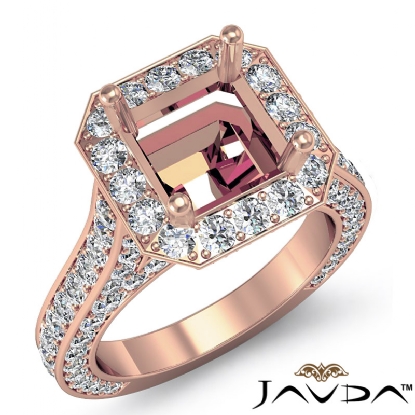 Diamond Engagement Asscher Semi Mount Halo Setting Ring 14k Rose Gold (2.1Ct. tw.)