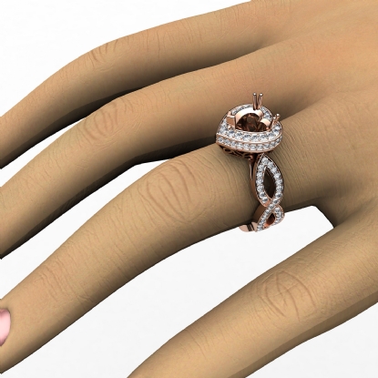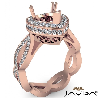 Diamond Engagement Heart Semi Mount Halo Pave Setting Ring 14k Rose Gold (1.3Ct. tw.)