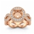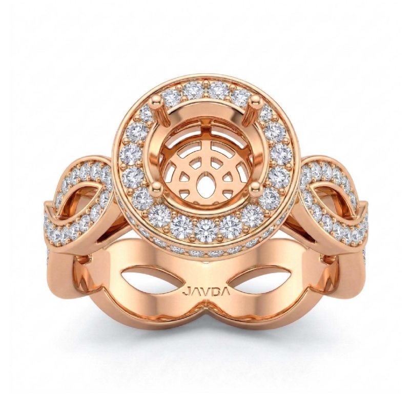 Undeniably striking, this 14k Rose Gold diamond engagement ring showcases a round semi mount in halo setting, with pave set round diamonds dazzling on the halo and the beautiful criss-cross shank. (1.3Ct. tw.)