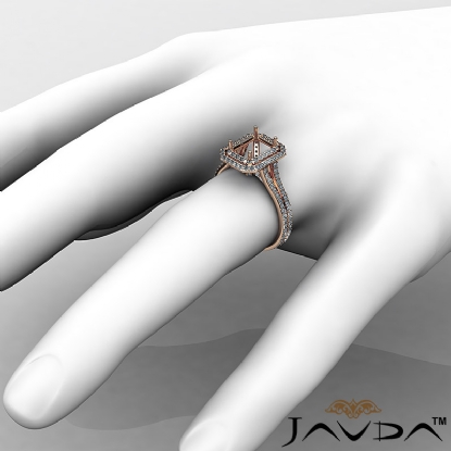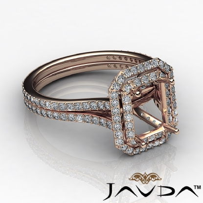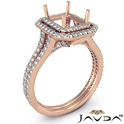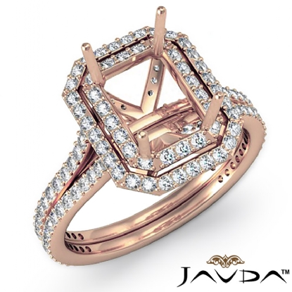 Halo Setting Diamond Engagement Emerald Cut Semi Mount Ring 14k Rose Gold (1.6Ct. tw.)