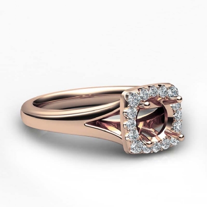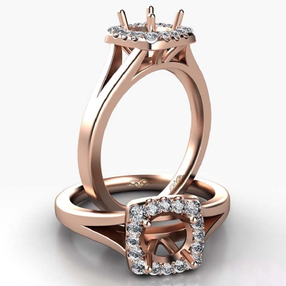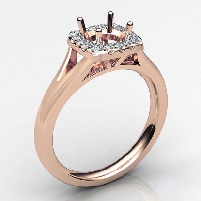 Round Diamond Engagement Semi Mount 18k Rose Gold Halo Pave Setting Ring (0.2Ct. tw.)