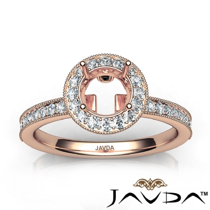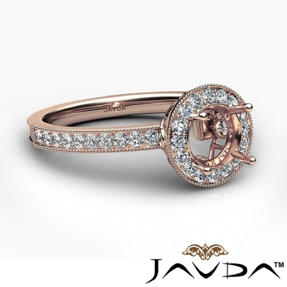 Halo Pave Setting Diamond Engagement 18k Rose Gold Round Semi Mount Ring (0.5Ct. tw.)