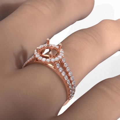 Side 0.75 ctw. Round Diamond Gorgeous Round Diamond Women Engagement & Anniversary Solid Ring made in 14k Rose Gold. Diamonds are set in Halo Prong Set for Round Cut in a Semi Mount. (0.75Ct. tw.)