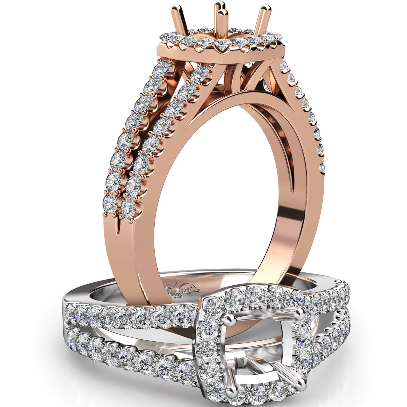 Gorgeous Halo Prong Diamond Engagement Cushion Semi Mount Ring 18k Rose Gold (0.75Ct. tw.)