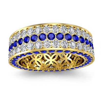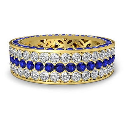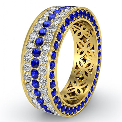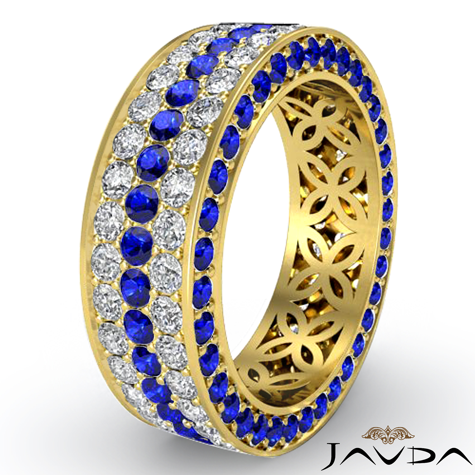 3 Row Eternity Pave Round Sapphire Women Diamond Wedding Band 18k Gold (1.2Ct. tw.)