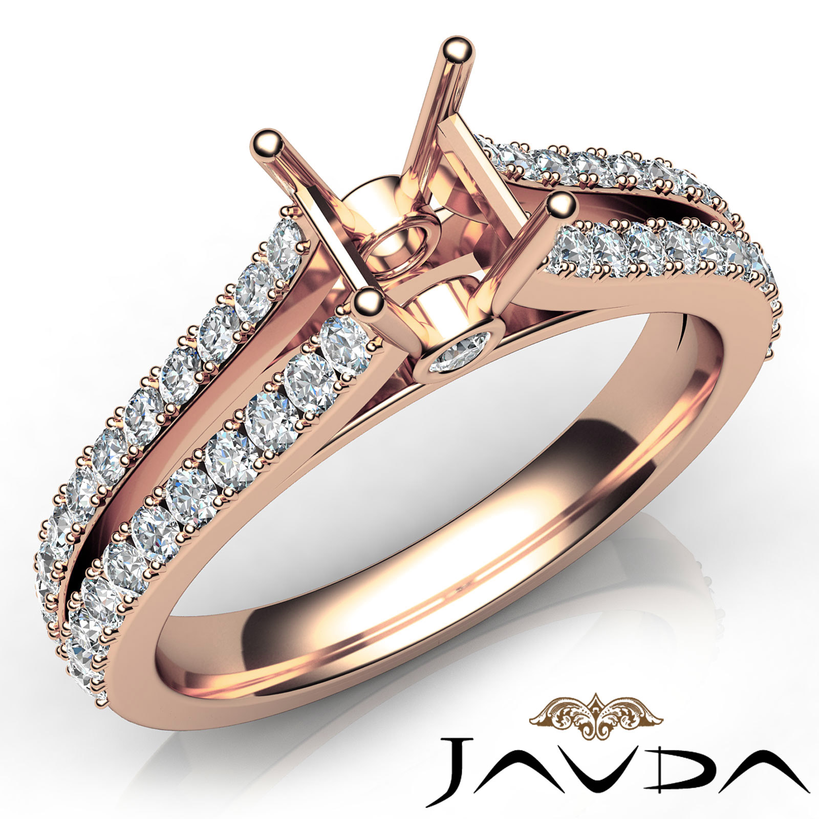 Side 0.65 ctw. Round Diamond Round Diamond Women Engagement & Anniversary Solid Ring made in 18k Rose Gold. Diamonds are set in Shared Prong Split Shank Setting for Asscher Cut in a Semi Mount. (0.65Ct. tw.)