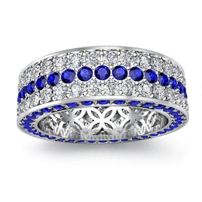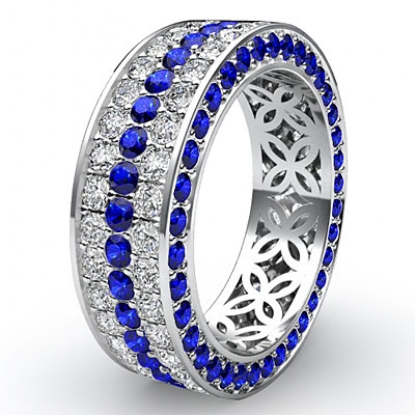3 Row Eternity Pave Round Sapphire Women Diamond Wedding Band Platinum (1.2Ct. tw.)