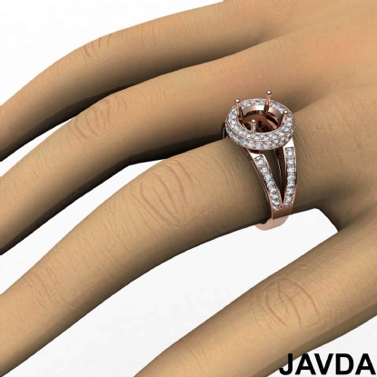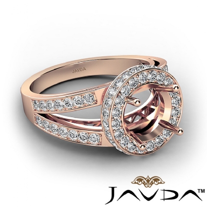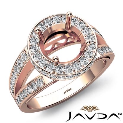 Round Semi Mount Diamond Engagement Halo Pave Setting Ring 14k Rose Gold (0.76Ct. tw.)